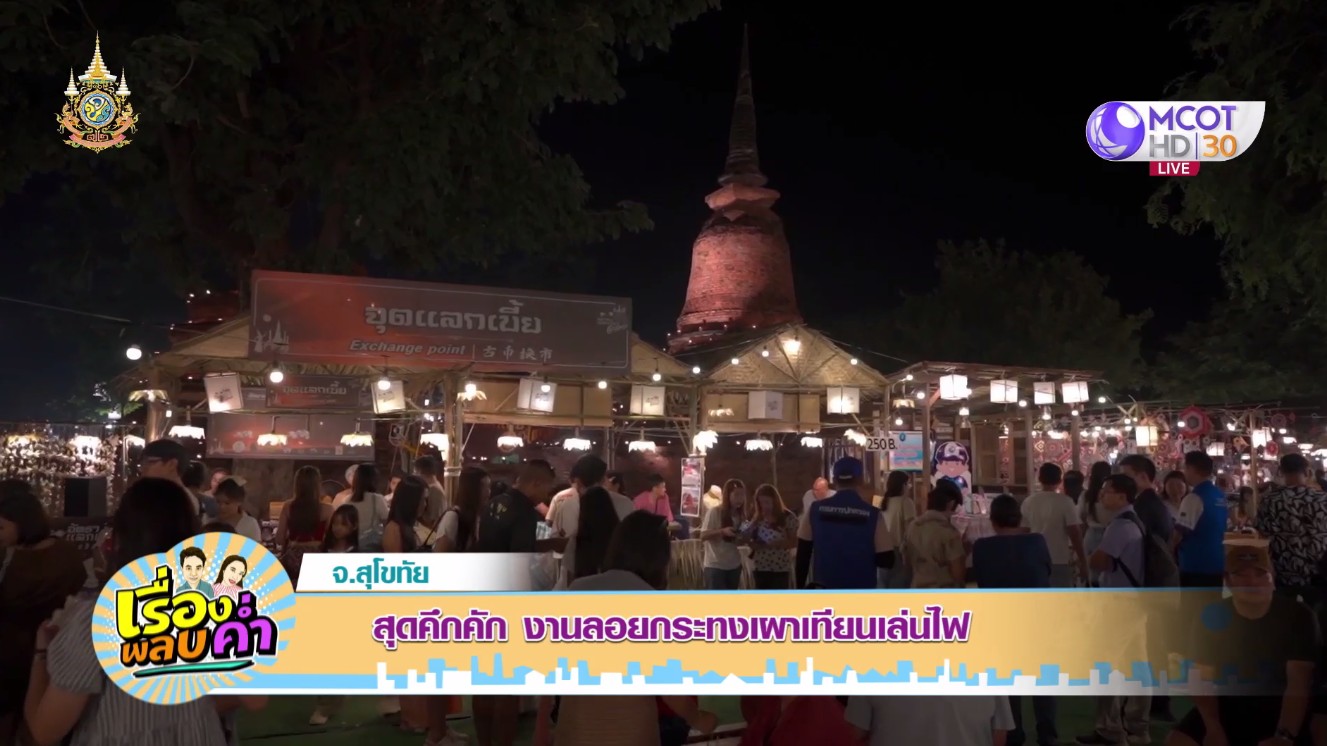 งานประเพณีลอยกระทง เผาเทียน เล่นไฟ จ.สุโขทัย จะมีต่อเนื่องไปจนถึงวันที่ 17 พฤศจิกายนนี้ โดยคืนนี้ วันเพ็ญเดือน 12 คาดว่านักท่องเที่ยวจะหลั่งไหลมาเที่ยวชมงานไม่ต่ำกว่า 8 หมื่นคน ตลอดช่วงเทศกาลลอยกระทง คาดเงินสะพัดไม่ต่ำกว่า 500 ล้านบาท