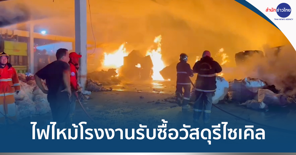 ปทุมธานี 16 พ.ย.- ระทึกกลางดึก! ไฟไหม้โรงงานรับซื้อวัสดุรีไซเคิลที่ปทุมธานี ระดมรถดับเพลิงกว่า 30 คัน ฉีดน้ำสกัดร่วม 2 ชม. จึงควบคุมเพลิงไว้ได้