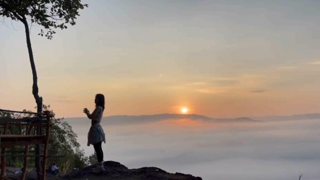 อีกจุดที่ภูโป่งฟาน บ้านบุ่งกุ่ม ต.นาหอ อ.ด่านซ้าย แหล่งท่องเที่ยวชมทะเลหมอกและพระอาทิตย์ เช้านี้ ทะเลหมอกมาเต็ม นักท่องเที่ยวไม่ผิดหวัง จุดนี้เป็นป่าชุมชนที่ใหญ่ที่สุด มีมากกว่า 4 พันไร่ ชาวบ้านร่วมกันพัฒนาเพื่อเป็นแหล่งท่องเที่ยว สร้ายรายได้ให้กับชุมชน