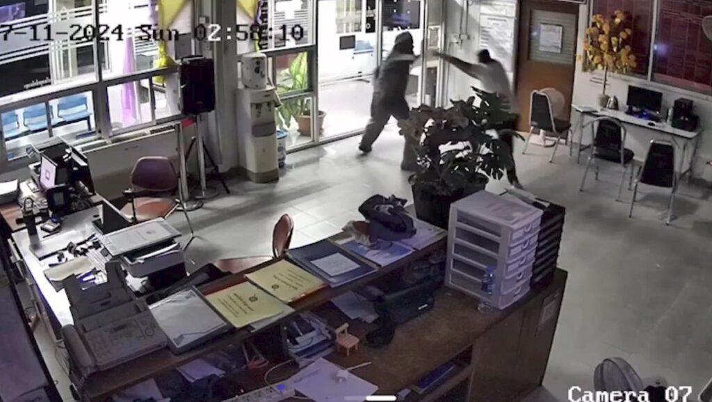 นายชูอัยบ์ อายุ 48 ปี คลุ้มคลั่งถือมีดบุกโรงพักท่าฉัตรไชย จ.ภูเก็ต ถีบประตูแทงสารวัตรสอบสวนบาดเจ็บ ที่ห้องรับแจ้งความ เมื่อวันที่ 17 พฤศจิกายนที่ผ่านมา ก่อนชายคลุ้มคลั่งรายนี้จะหนีข้ามจังหวัด แต่ไม่รอด เกิดอุบัติเหตุบริเวณวงเวียนจนได้รับบาดเจ็บ ตำรวจตามอายัดตัวคาเตียงในโรงพยาบาล พร้อมดำเนินคดีข้อหาหนัก คือ “พยายามฆ่าเจ้าพนักงานขณะปฏิบัติหน้าที่ และทำให้เสียทรัพย์”