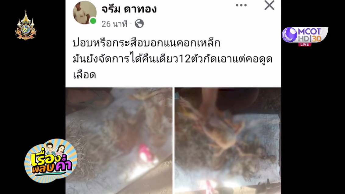 เมื่อวานนี้ (17 พ.ย.67) มีผู้ใช้เฟซบุ๊กชื่อ “จรึม ดาทอง” ได้โพสต์ภาพซากไก่ตายปริศนา พร้อมข้อความระบุว่า “ปอบหรือกระสือบอกแน คอกเหล็ก มันยังจัดการได้คืนเดียว 12 ตัว กัดเอาแต่คอดูดเลือด” ซึ่งสภาพของซากไก่ที่ตาย ทั้งถูกกัดจนหัวขาด บางตัวถูกกัดคอคล้ายโดนดูดเลือด และบางตัวถูกคว้านท้องเครื่องในหายไป
