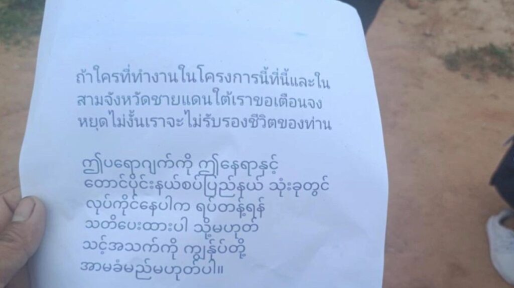 ภายหลังฉีดน้ำสกัดเพลิงเอาไว้ได้ ตำรวจ อ.เทพา เจ้าหน้าที่ฝ่ายความมั่นคง เข้าตรวจสอบที่้เกิดเหตุ พบใบปลิวเขียนข้อความข่มขู่เป็นภาษาไทยและภาษาเมียนมาว่า “ถ้าใครที่ทำงานในโครงการนี้ที่นี่และในสามจังหวัดชายแดนภาคใต้ เราขอเตือนจงหยุด ไม่งั้นเราจะไม่รับรองชีวิตของท่าน”