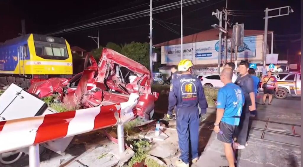เจ้าหน้าที่ สภ.บางละมุง รับแจ้งเหตุรถไฟชนรถเก๋ง บริเวณทางรถไฟ ภายในซอยเขาตาโล หมู่ 10 ต.หนองปรือ อ.บางละมุง จ.ชลบุรี หลังรับแจ้งจึงรีบรุดไปตรวจสอบพร้อมหน่วยกู้ภัยมูลนิธิสว่างบริบูรณ์ฯ เมืองพัทยา