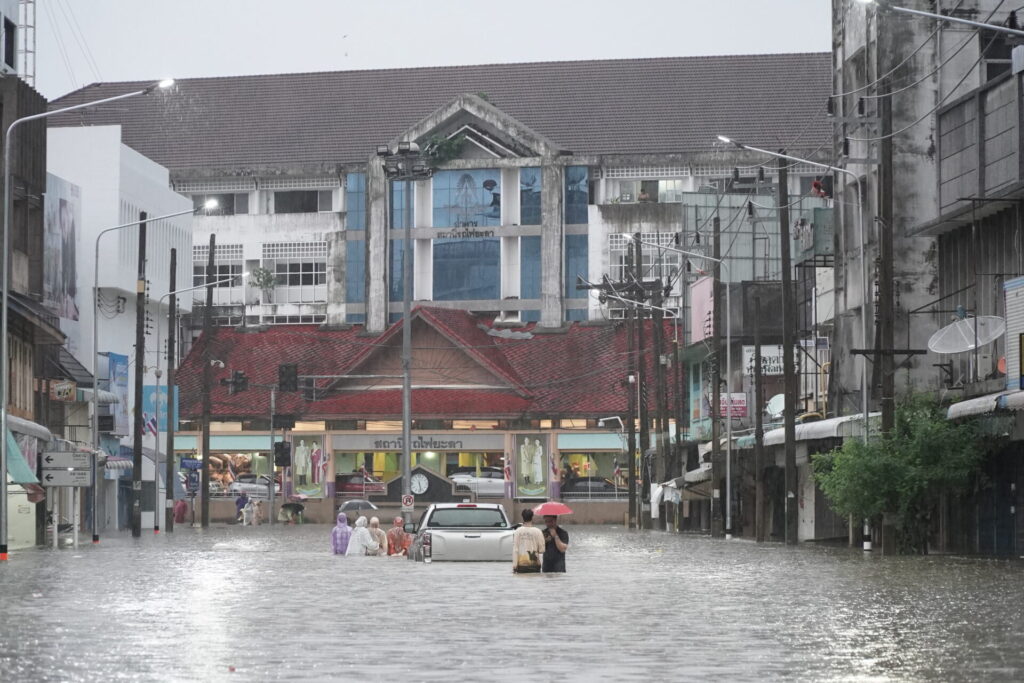ยะลา 27 พ.ย.- ย่านเศรษฐกิจการค้าเมืองยะลา ระดับน้ำเพิ่มสูงขึ้นต่อเนื่อง ขยายวงกว้าง เจ้าหน้าที่เร่งช่วยร้านค้าขนย้ายสิ่งของจำเป็น