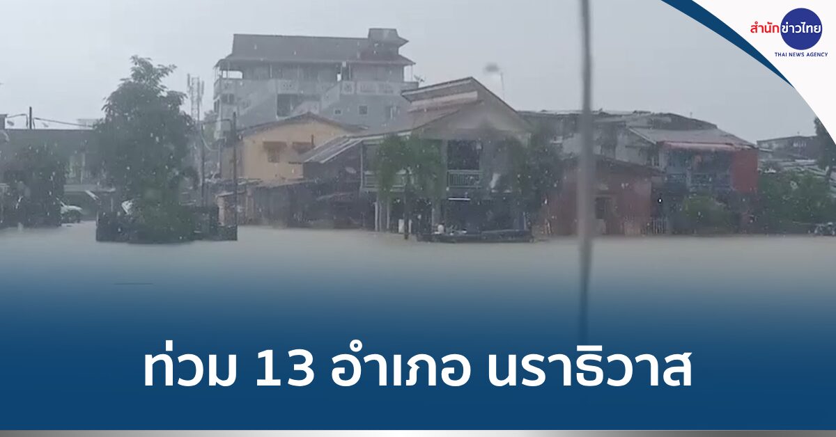 ที่ จ.นราธิวาส ล่าสุดยังมีฝนตกลงมาอย่างหนัก ทำให้แม่น้ำสายหลัก 3 สาย คือ แม่น้ำบางนรา แม่น้ำสายบุรี และแม่น้ำโก-ลก ล้นตลิ่ง ไหลเข้าท่วมพื้นที่การเกษตรและบ้านเรือนของประชาชนทั้ง 13 อำเภอ มีประชาชนเดือดร้อนกว่า 42,000 ครัวเรือน รวมกว่า 150,000 คน 4 อำเภอ คือ อ.ระแงะ รือเสาะ แว้ง และสุไหงโก-ลก โรงเรียนปิดการเรียนการสอนชั่วคราวแล้ว 68 แห่ง บางแห่งมีน้ำท่วมขังสูง ขณะที่นักเรียนบางส่วนถูกน้ำท่วมบ้านพัก ถนนบางสายถูกตัดขาด ไม่สามารถเดินทางมาเรียนหนังสือได้ รถตู้โดยสารจาก อ.สุไหงโก-ลก ปลายทาง 4 จังหวัดชายแดนภาคใต้ ประกาศงดเดินรถชั่วคราวตั้งแต่วันนี้ เนื่องจากถนนสายหลักมีน้ำท่วมขังสูงเป็นจุดๆ โดยในพื้นที่ 3 อำเภอ ของนราธิวาส มีถนนถูกตัดขาดทุกชนิดไม่สามารถแล่นผ่านได้แล้ว 6 สาย