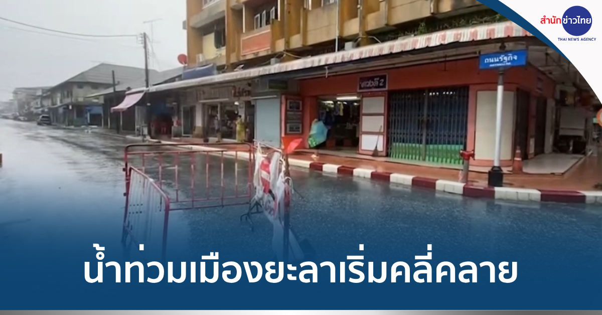 สถานการณ์น้ำท่วม จ.ยะลา เริ่มคลี่คลายแล้ว แม้ยังมีฝนตกหนักสลับเบาอย่างต่อเนื่อง แต่พื้นที่หลายแห่งใน อ.เมืองยะลา โดยเฉพาะเทศบาลนครยะลา ที่เป็นพื้นที่น้ำท่วมหนัก ระดับน้ำลดลง ขณะที่พื้นที่เศรษฐกิจกลางเมือง บริเวณถนนสายกลาง ระดับน้ำลดลงจนเกือบเข้าสู่ภาวะปกติ ร้านค้าหลายแห่งเริ่มทำความสะอาดร้านแล้ว