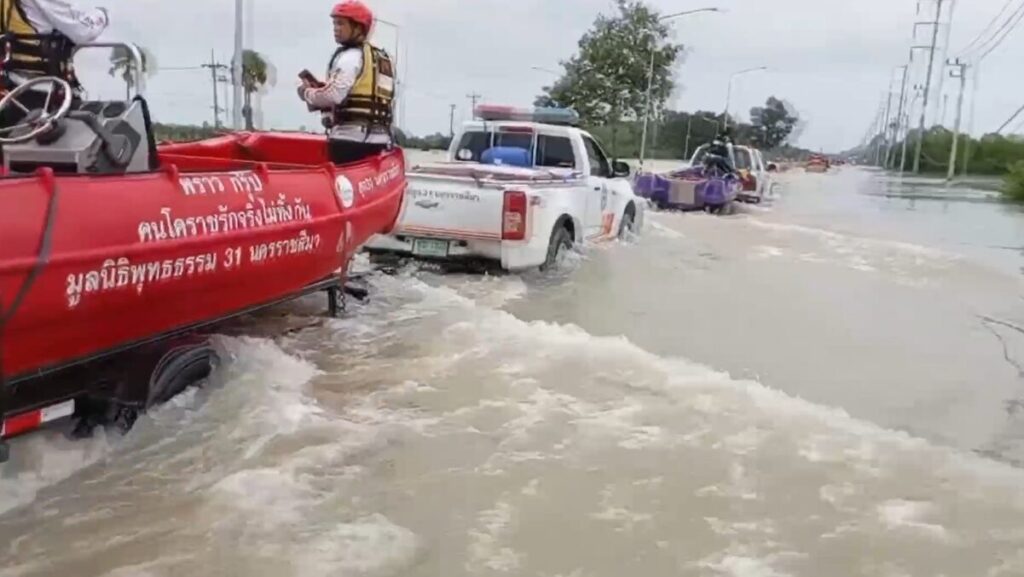 ทีมกู้ภัยทางน้ำ ฮุก 31 โคราช ได้จัดทีมอาสากู้ภัยทางน้ำพร้อมด้วยอุปกรณ์กู้ภัยและเรือยางติดเครื่องยนต์ เดินทางไปร่วมช่วยเหลือผู้ประสบอุทกภัยน้ำท่วมทางภาคใต้ ซึ่งภารกิจแรก ได้ลงพื้นที่ไปปฏิบัติการช่วยเหลือ ในเขตอำเภอเมืองปัตตานี จังหวัดปัตตานี ซึ่งระดับน้ำท่วมผิวจราจรสูง ต้องใช้รถบรรทุกหรือรถยกสูงเท่านั้น รถเล็กไม่สามารถสัญจรได้ ขณะที่ประชาชนที่มีบ้านเรือนชั้นเดียวก็ถูกน้ำไหลหลากเข้าภายในตัวบ้าน ต้องเก็บข้าวของที่จำเป็นขึ้นที่สูงเท่าที่จะทำได้ โดยทีมกู้ภัยทางน้ำ ฮุก 31 โคราช ได้เข้าไปช่วยเหลือประชาชนที่มี บ้านเรือนที่อยู่ริมน้ำ ใกล้กับสะพานตะลุโบะ ซึ่งจุดนี้ ระดับน้ำท่วมสูงมาก กระแสน้ำไหลเชี่ยว ประชาชนถูกตัดขาดจากโลกภายนอก เจ้าหน้าที่ต้องใช้เชือกโรยตัวจากบนสะพาน เดินเท้าฝ่ากระแสน้ำนำน้ำและอาหารไปมอบให้ชาวบ้าน