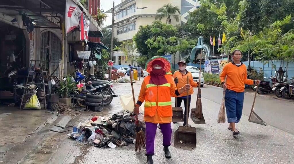 ส่วนที่ จ.สงขลา สถานการณ์น้ำท่วมที่ อ.หาดใหญ่ จ.สงขลา ในวันนี้น้ำแห้งกลับเข้าสู่ภาวะปกติหมดแล้วทุกพื้นที่ ซึ่งชาวบ้านชาวเมืองย่านชุมชนหาดใหญ่ในเริ่มออกมาทำความสะอาดบ้าน โดยทุกตรอกซอกซอยเช่นในชุมชนเทศาพัฒนาที่น้ำท่วมสูงเต็มไปด้วยขยะมหาศาลที่รอเก็บออกจากพื้นที่