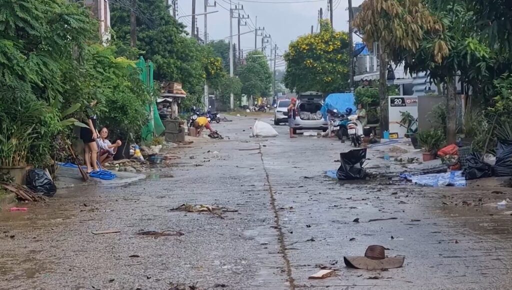 เช่นเดียวกับในพื้นที่รอบนอกของเมืองหาดใหญ่ ที่ถูกน้ำท่วมหนักเช่นหมู่บ้านลัดดา ริมคลอง ร.1 น้ำลดลงแห้งสนิทตั้งแต่เมื่อคืนนี้ ซึ่งสภาพไม่ต่างกันเต็มไปด้วยขยะ บางหลังใช้วิธีผูกโยงรถจักรยานยนต์ไว้หน้าบ้าน และบ้านแต่ละหลังต่างคนก็ต่างออกมาทำความสะอาดบ้าน