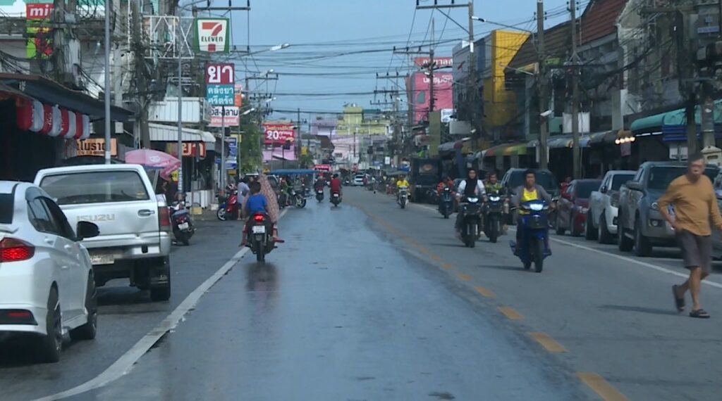 ส่วนจุดที่ยังมีน้ำท่วมถนนอยู่ แต่ระดับสูงไม่มาก พ่อค้าแม่ค้าหลายคนออกมาตั้งโต๊ะขายของบนทางเท้า ทำให้ในตัวเมืองวันนี้คึกคักกว่าช่วง 3-4 วันที่ผ่านมามาก