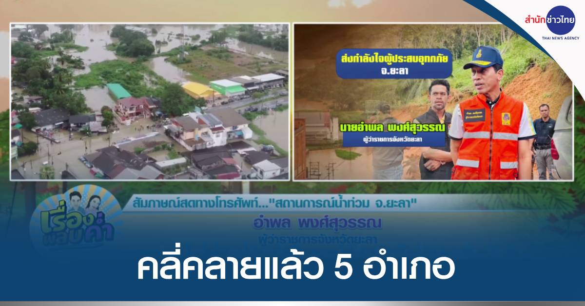 2 พ.ย. – ผู้ว่าฯ ยะลา เผยยะลาประสบภัยน้ำท่วมทั้ง 8 อำเภอ ประชาชนได้รับผลกระทบกว่า 1 แสนคน ขณะนี้ฝนหยุดตกแล้ว ระดับน้ำเริ่มลดลง สถานการณ์คลี่คลายแล้ว 5 อำเภอ ระบุน้ำท่วมครั้งนี้หนักสุดในรอบ 36 ปี