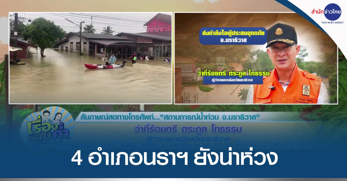 2 พ.ย. – ผู้ว่าฯ นราธิวาส เผยน้ำท่วมหลายพื้นที่เริ่มคลี่คลาย ใกล้เข้าสู่ภาวะปกติ เหลือ 4 อำเภอ ยังน่าห่วง เพราะยังมีน้ำท่วมขังสูง