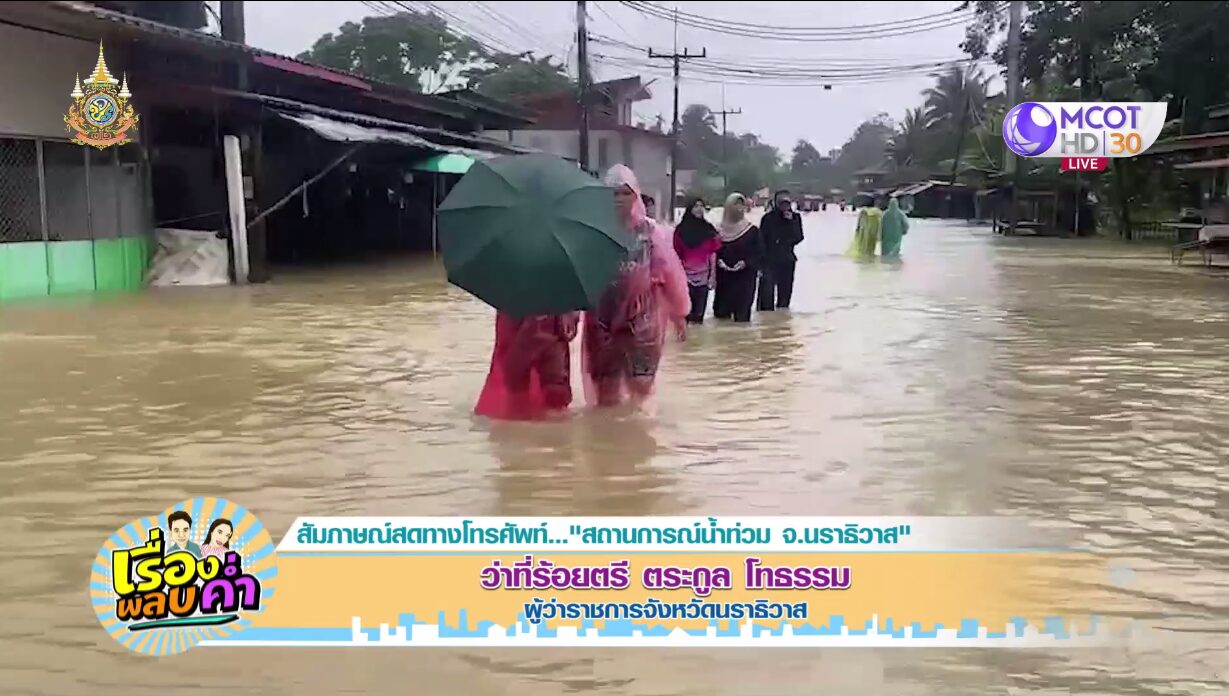 ว่าที่ร้อยตรี ตระกูล โทธรรม ผู้ว่าราชการจังหวัดนราธิวาส เผยสถานการณ์น้ำท่วม จ.นราธิวาส ล่าสุดหลายพื้นที่เริ่มคลี่คลาย ใกล้เข้าสู่ภาวะปกติ หลังไม่มีฝนตกแล้ว คงเหลืออีก 4 อำเภอ ที่ยังต้องเฝ้าระวัง คือ เจาะไอร้อง ตากใบ สุไหงโก-ลก และ อ.เมืองนราธิวาส เนื่องจากยังมีน้ำท่วมขังสูง ภาพรวมได้รับผลกระทบทั้ง 13 อำเภอ ประชาชนเดือดร้อนกว่า 3 แสนคน หนักสุดในรอบหลายสิบปี. – สำนักข่าวไทย