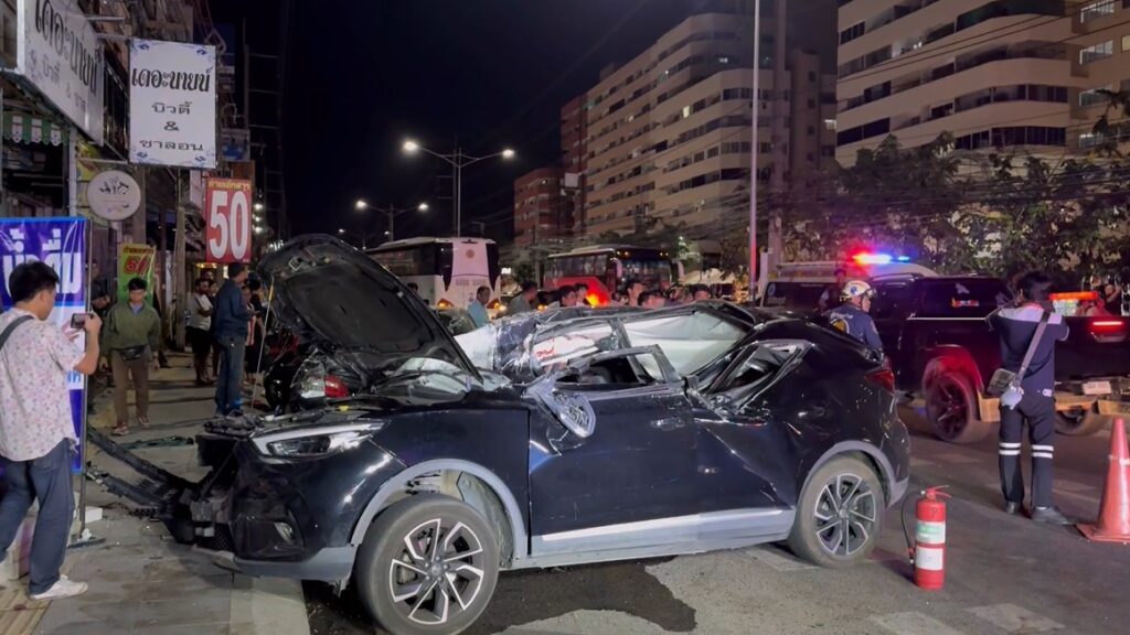 พัทยา 6 ธ.ค. – หนุ่มจีนวัย 39 ปี ซิ่งรถตู้หรูชนระนาวกลางเมืองพัทยา นักท่องเที่ยวกระโดดหนีกระเจิง พบมีผู้เสียชีวิต 1 คน บาดเจ็บเพียบ รถยนต์และรถจักรยานยนต์เสียหาย 12 คัน