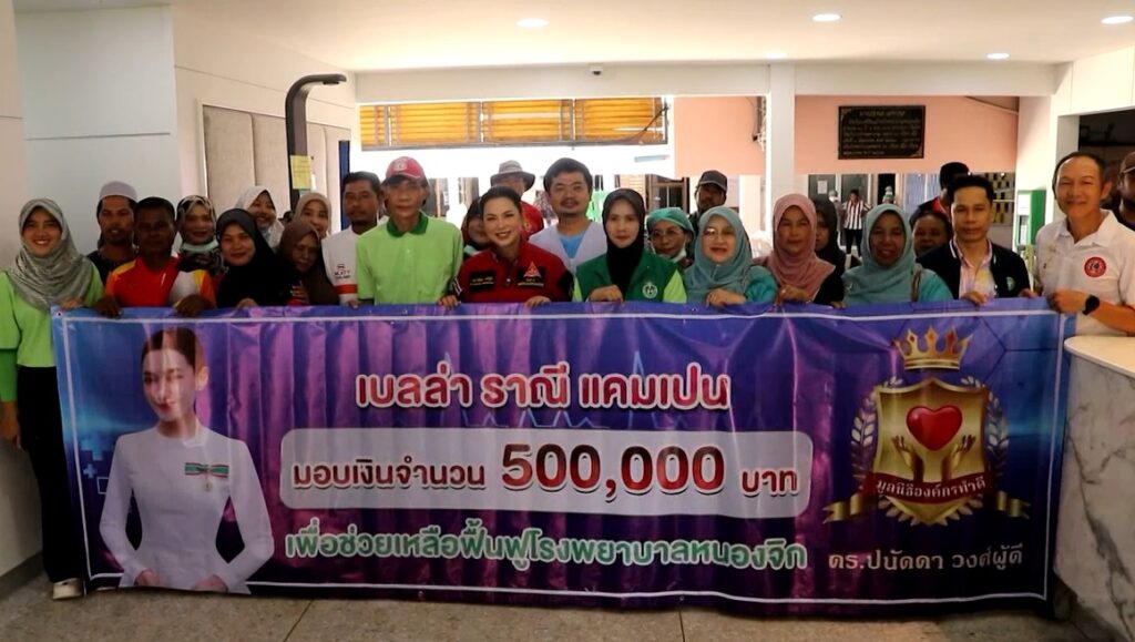 ทั้งนี้ บุ๋ม ปนัดดา มอบเงินช่วยเหลือให้กับทางโรงพยาบาล จำนวน 500,000 บาท โดยได้รับบริจาคจาก เบลล่า-ราณี แคมเปน นักแสดงสาวชื่อดัง และยังมอบเงินช่วยเหลือโรงเรียน ศาสนสถานที่ได้รับความเสียหายอีกด้วย