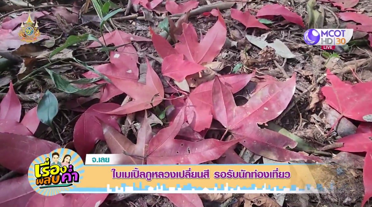 ที่เขตรักษาพันธุ์สัตว์ป่าภูหลวง อ.ภูเรือ จ.เลย ใบเมเปิล หรือ ก่วมแดง หรือ ไฟเดือนห้า เปลี่ยนจากสีเขียวเป็นสีแดงสด ผลัดใบร่วงลงสู่พื้นดิน รอรับนักท่องเที่ยวและผู้สนใจศึกษาธรรมชาติมาสัมผัสความสวยงาม ตั้งแต่ช่วงต้นหนาวเดือนธันวาคม ถึงต้นเดือนกุมภาพันธ์ของทุกปี แต่ปีนี้หนาวเย็นและลมแรงเร็ว ทำให้ใบเมเปิลเปลี่ยนสีเร็วกว่าทุกปี