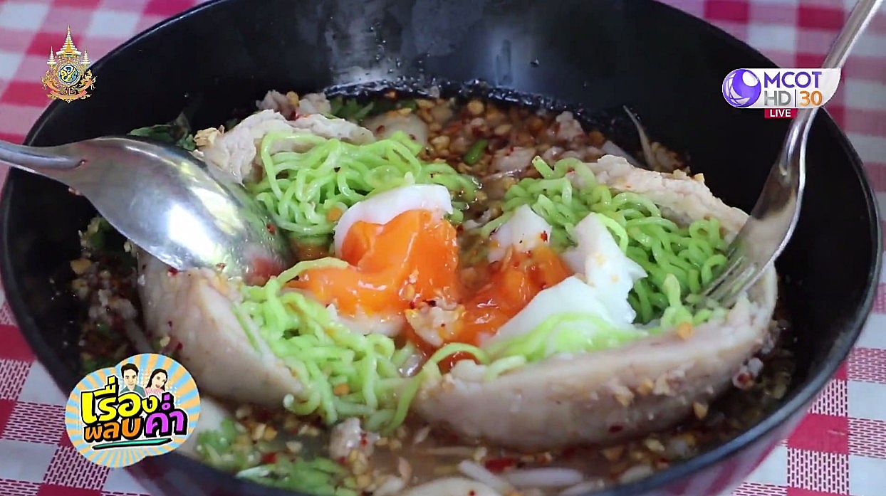 ลูกค้าที่มาหลายคนจะสั่งรับประทานหลากหลายเมนู เจ้าของร้านใจดีตักให้แบบจุกๆ ทั้งขนมจีนแกงไก่ แกงเนื้อกินกับข้าว ก๋วยเตี๋ยวหมูตุ๋น และที่ขาดไม่ได้ เมนูซิกเนเจอร์ของทางร้าน คือ ก๋วยเตี๋ยวต้มยำลูกชิ้นไข่ใหญ่ ชามละ 100 บาท ที่ทุกคนต้องชิม เพราะเดี๋ยวจะหาว่ามาไม่ถึงราชบุรี การรับประทานลูกชิ้นไข่ใหญ่ ต้องผ่าครึ่งออกมา ชั้นนอกจะเป็นหมูเด้ง ตามด้วยบะหมี่หยก และไข่แดงยางมะตูมเป็นชั้นในสุด ผสมเครื่องต้มยำสูตรโบราณ หลายคนที่ชิมบอกเป็นเสียงเดียวกันว่า อร่อยไม่ต้องเติมเครื่องปรุงอีกแล้ว
