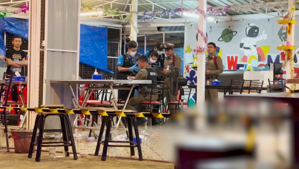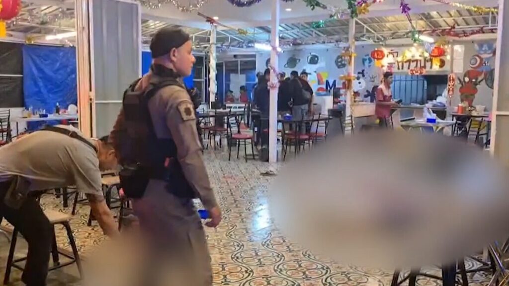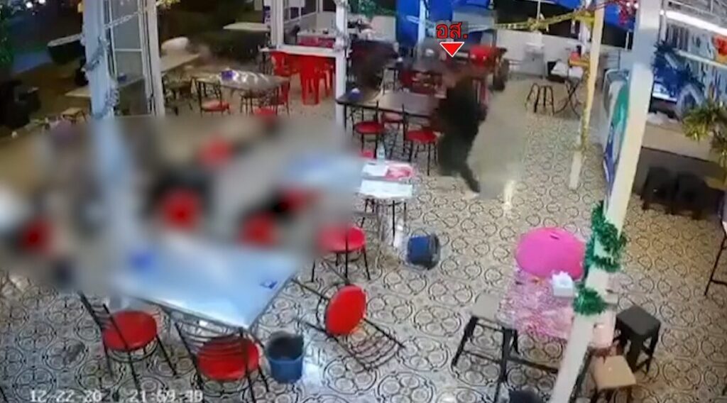 สงขลา 23 ธ.ค. – อส.ปืนโหด สั่งเหล้าที่ร้านข้าวต้ม แล้วออกมายืนสูบบุหรี่ เด็กเสิร์ฟไม่รู้ ไปเก็บโต๊ะ คิดว่าเช็กบิลแล้ว อส.ไม่พอใจคว้าปืนยิงไปทั่วร้าน ถูกสามีภรรยาพาลูกมาเลี้ยงวันเกิด เสียชีวิต 2 ราย