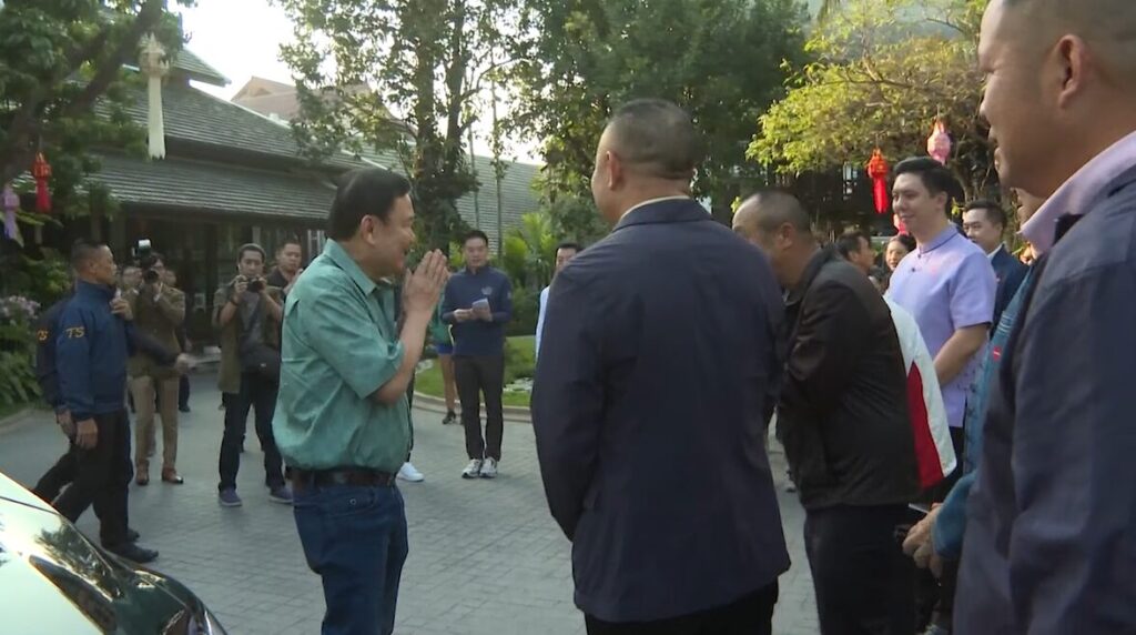 ก่อนที่นายทักษิณ จะเดินทางขึ้นเวทีปราศรัย ที่ตลาดภูสุวรรณ ในอำเภอสันป่าตอง เพื่อช่วยนายพิชัย เลิศพงศ์อดิศร หรือ สว.ก๊อง ผู้สมัครนายก อบจ.เชียงใหม่ พรรคเพื่อไทย ท่ามกลางผู้สนับสนุนชาวอำเภอหางดง สันป่าตอง ดอยหล่อ และจอมทอง ที่มารอฟังการปราศรัยครั้งนี้