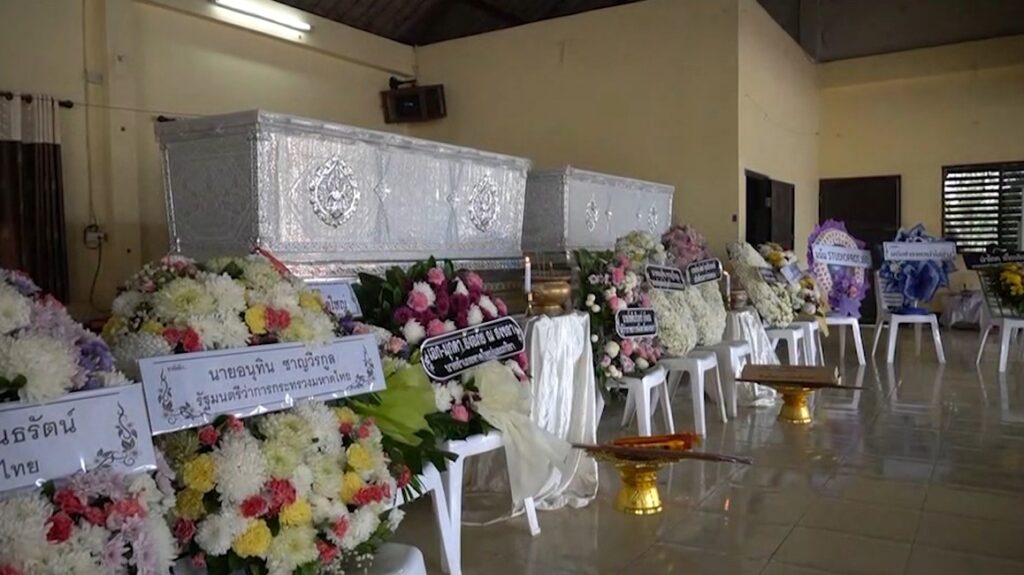 ส่วนที่วัดป่าบอนต่ำ ต.ป่าบอน อ.ป่าบอน จ.พัทลุง ร่างของนายสิทธิพงศ์ และนางอรชอน สองสามีภรรยาผู้เสียชีวิต เดินทางมาถึงตั้งแต่เมื่อคืน บรรยากาศเป็นไปด้วยความโศกเศร้า ครอบครัวเตรียมจัดพิธีศพของทั้งคู่ด้วยกันที่วัด โดยตั้งโรงศพคู่และมีการจัดเตรียมงาน ซึ่งจะเริ่มตั้งแต่วันนี้ 24 ธ.ค. ก่อนจะมีพิธีฌาปณกิจในวันที่ 26 ธ.ค. 67