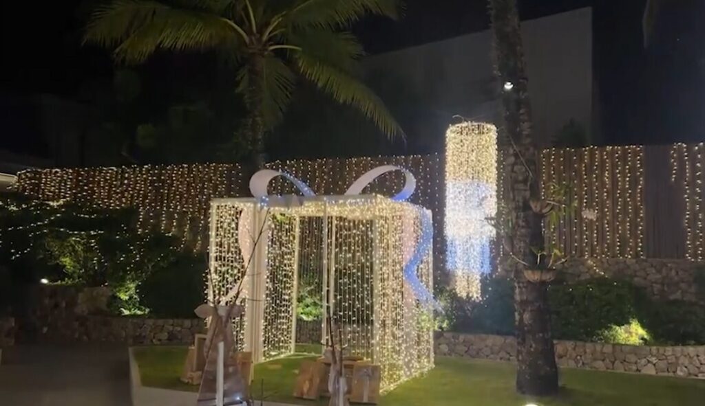 พังงา 25 ธ.ค. – นักท่องเที่ยวออกมาฉลองวันคริสต์มาสอีฟที่พังงา อย่างสนุกสนาน โรงแรมเขาหลักตกแต่งประดับไฟสวยงาม