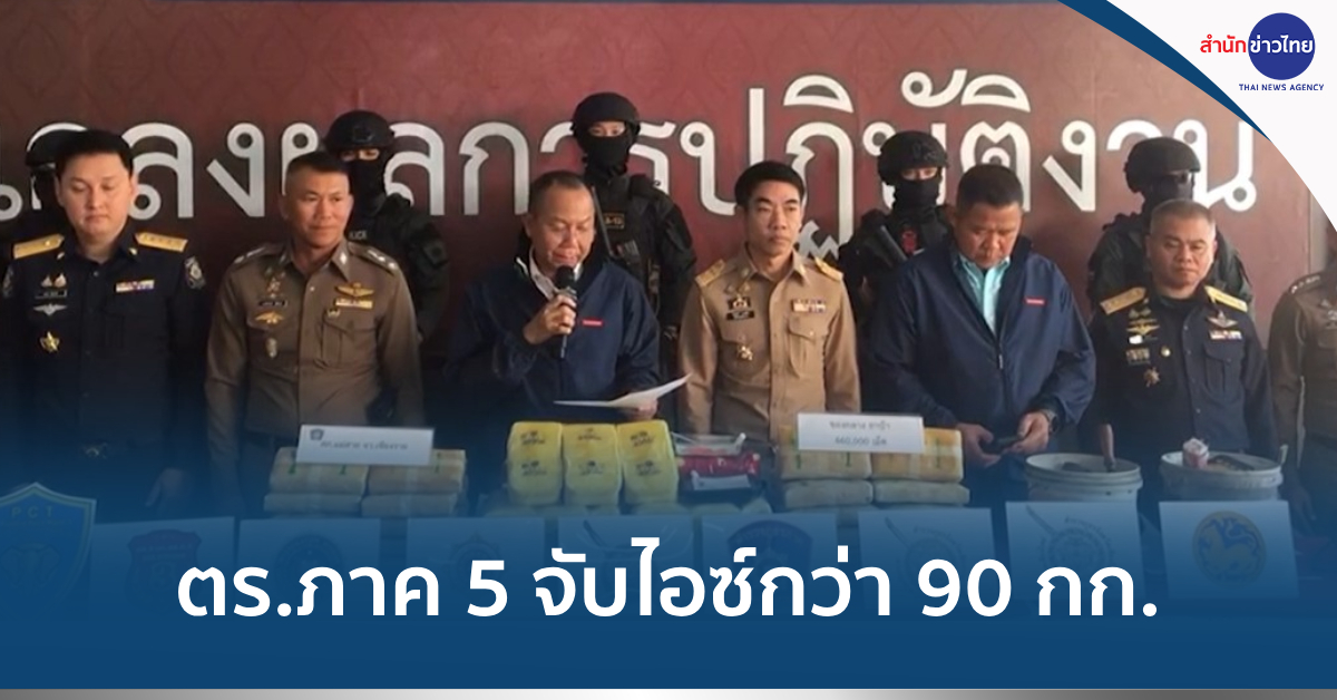เชียงใหม่ 25 ธ.ค. – ตำรวจภาค 5 แถลงจับคดียาเสพติดลอตใหญ่ น้ำหนักรวมกว่า 90 กก. มูลค่านับพันล้านบาท คาดลักลอบลำเลียงไปแล้วหลายครั้ง เบื้องพบเจ้าของยาเสพติดอยู่ในประเทศเพื่อนบ้าน