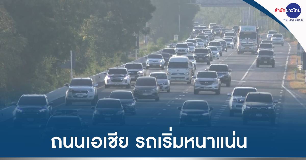 ชัยนาท 28 ธ.ค.-ถนนเอเชีย ฝั่งขาขึ้นภาคเหนือ ช่วงผ่าน จ.ชัยนาท รถเริ่มหนาแน่นบางช่วง ประชาชนทยอยกลับภูมิลำเนา