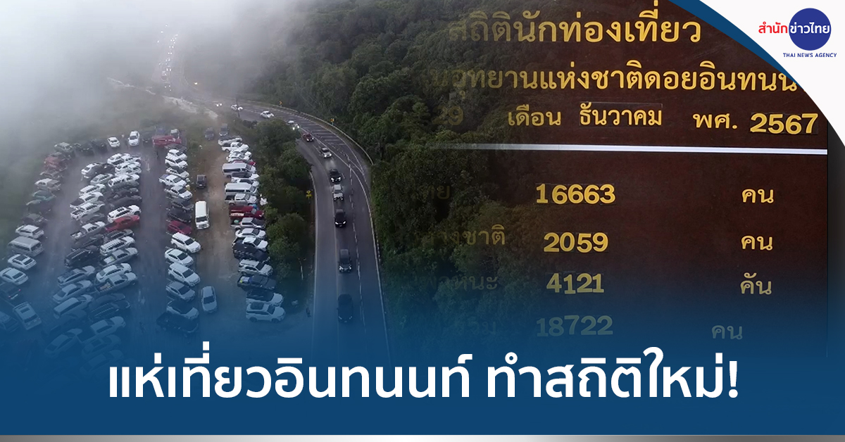 เชียงใหม่ 30 ธ.ค.- ทำสถิติใหม่! นักท่องเที่ยวแห่สัมผัสอากาศหนาวบนดอยอินทนนท์ มากถึง 18,722 คน ยานพาหนะ 4,121 คัน ทำการจราจรติดยาวเหยียด