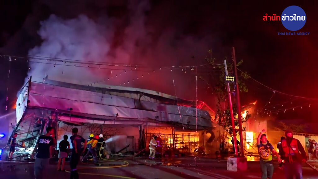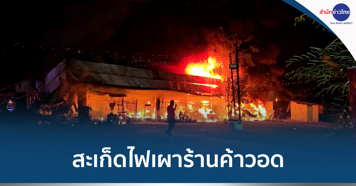นี่เป็นภาพวงจรปิดเมื่อเวลา 20.00 น. วานนี้ เจ้าหน้าที่ สภ.กระทุ่มแบน จ.สมุทรสาคร รับแจ้งเหตุเพลิงไหม้ร้านจำหน่ายสินค้า 20 บาท ริมถนนเศรษฐกิจภายในตลาดนัด ต.ท่าไม้ อ.กระทุ่มแบน จ.สมุทรสาคร จึงรีบสั่งการประสานดับเพลิง อบต.ท่าไม้ รีบไปฉีดน้ำดับเพลิงแล้วรุดนำกำลังไปตรวจสอบ