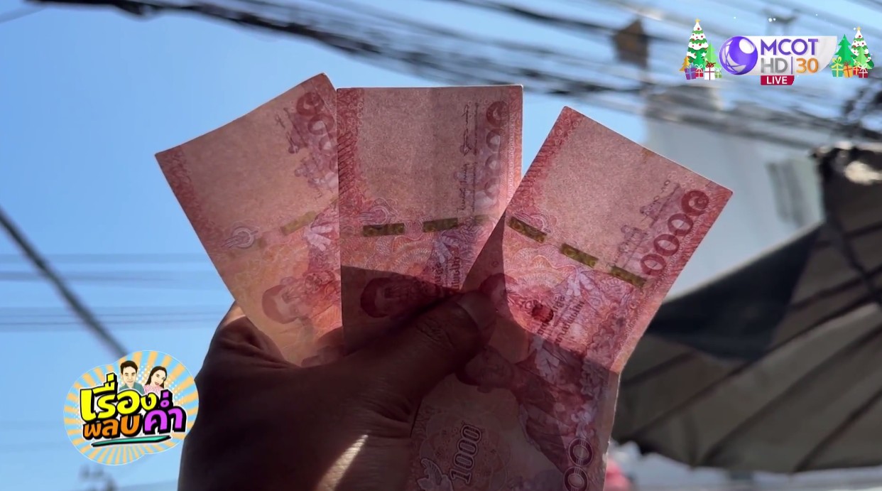 ต่อมาตนเองหยิบแบงก์ 1,000 ทั้ง 3 ใบ ออกมาส่องดู พบว่าลายน้ำไม่มีภาพเงาพระบรมสาทิสลักษณ์พระบาทสมเด็จพระเจ้าอยู่หัว และเมื่อสัมผัสธนบัตรคล้ายกับกระดาษ A4 จนทราบแน่ชัดว่าเป็นแบงก์ปลอม จึงเดินทางมาแจ้งความ