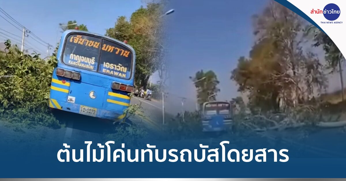 เกิดอุบัติเหตุต้นไม้โค่นล้มทับรถบัสโดยสารสายกาญจนบุรี-เอราวัณ ทำให้กระจกแตกกระเด็นใส่นักท่องเที่ยวได้รับบาดเจ็บ เมื่อวันที่ 3 ม.ค.ที่ผ่านมา