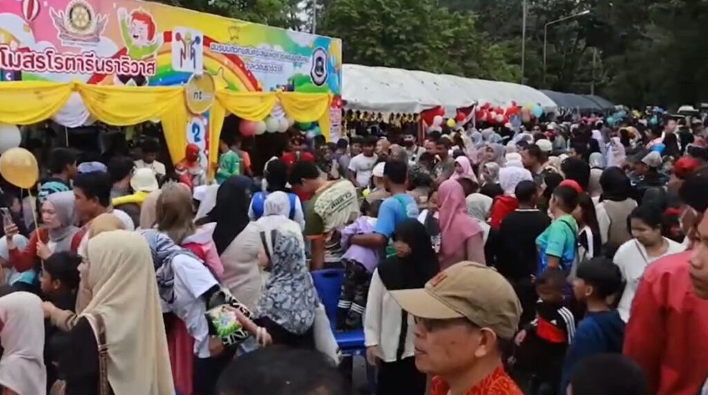 บรรยากาศงานวันเด็กแห่งชาติ บริเวณหาดนราทัศน์ อ.เมือง จ.นราธิวาส คึกคักอย่างต่อเนื่องตั้งแต่ช่วงเช้า ผู้ปกครองต่างพาบุตรหลานมาร่วมสนุกและร่วมกิจกรรมที่หน่วยงานต่างๆ จัดขึ้น โดยว่าที่ร้อยตรี ตระกูล โทธรรม ผู้ว่าราชการจังหวัดนราธิวาส เป็นประธานเปิดกิจกรรมวันเด็กแห่งชาติ ประจำปี 2568 โดยสวมชุดเจ้าชายสีแดง สดใส นำของขวัญส่งมอบความสุขแก่เด็กๆ นราธิวาส