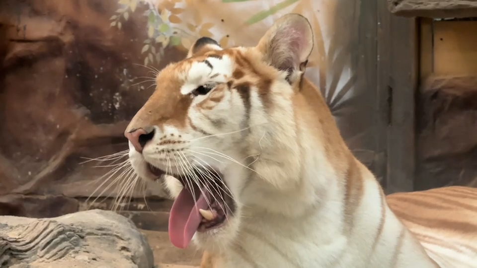 สำหรับ น้องเอวา เป็นเสือเพศเมีย อายุ 3 ขวบ มีพี่ชื่อว่าลูน่า ทั้งสองเป็นเสือโคร่งสีทองหรือเสือโคร่งสตรอเบอร์รี ที่มีเอกลักษณ์โดดเด่นจากสีขนสีทองอ่อนผสมขาว พร้อมลายเสือที่จางลงจนแทบเห็นเป็นจุดหรือแถบใหญ่เป็นเอกลักษณ์ ที่เกิดจากยีนด้อยชนิดหนึ่งที่เรียกว่า “ยีนไวด์แบนด์” ทำให้เกิดเป็นเสือโคร่งสีขาวแบบไม่มีลาย หาชมได้ยากในธรรมชาติ มีอยู่เพียง 50-100 ตัวในโลกเท่านั้น