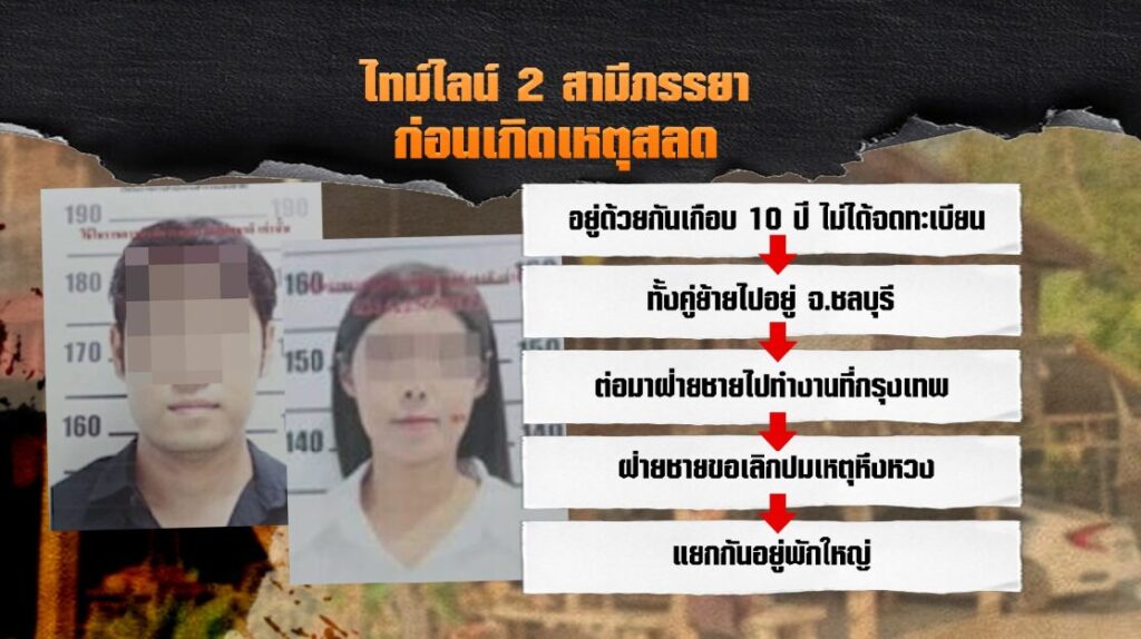 สำหรับผู้ตาย และ น.ส.จิตรา เป็นสามีภรรยาที่ไม่ได้จดทะเบียนกัน และอยู่กินกันมานานเกือบ 10 ปี โดยทั้งคู่ได้ย้ายไปใช้ชีวิตอยู่ที่ จ.ชลบุรี ก่อนที่ฝ่ายชายจะย้ายไปทำงานเป็นผู้จัดการโรงงานที่กรุงเทพฯ ซึ่งระหว่างนี้ ทั้งคู่ทะเลาะหึงหวงและไม่เข้าใจกัน กระทั่งฝ่ายชายขอเลิกราและแยกกันอยู่มาได้สักพักใหญ่