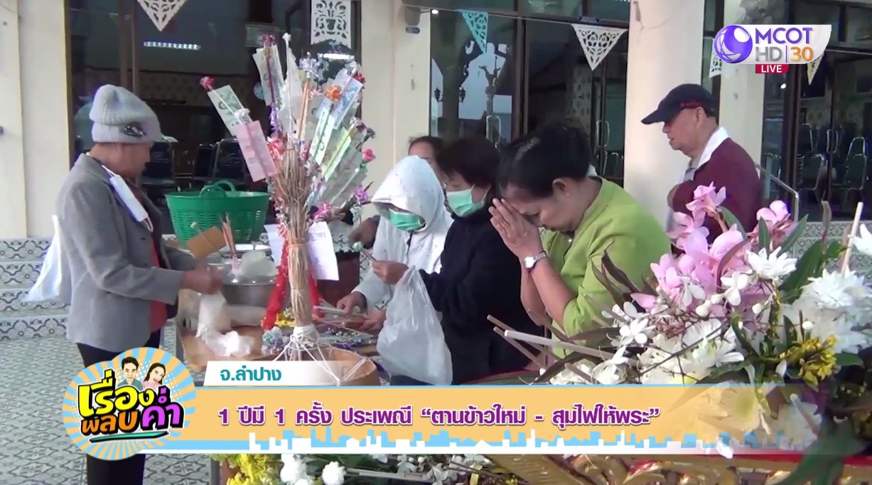 ที่วัดชมพูหลวง หมู่ 7 ต.ชมพู อ.เมือง จ.ลำปาง ชาวบ้านต่างนำดอกไม้ธูปเทียน ข้าวใหม่ ทั้งข้าวสาร ข้าวเหนียวนึ่ง มาถวายพระพุทธรูป องค์พระประธาน ก่อนจะนำข้าวหลาม ข้าวจี่ อาหารคาวหวานไปใส่บาตรที่วัดจัดเตรียมไว้ เพื่อรอทำพิธีทางศาสนา นอกจากนี้ ยังได้นำฟืนมาสุมกองรวมกันที่หน้าพระวิหาร เพื่อรอทำพิธีสุมไฟคลายหนาวให้พระพุทธเจ้า ซึ่งพิธีนี้ได้ปฏิบัติสืบทอดต่อกันมายาวนาน