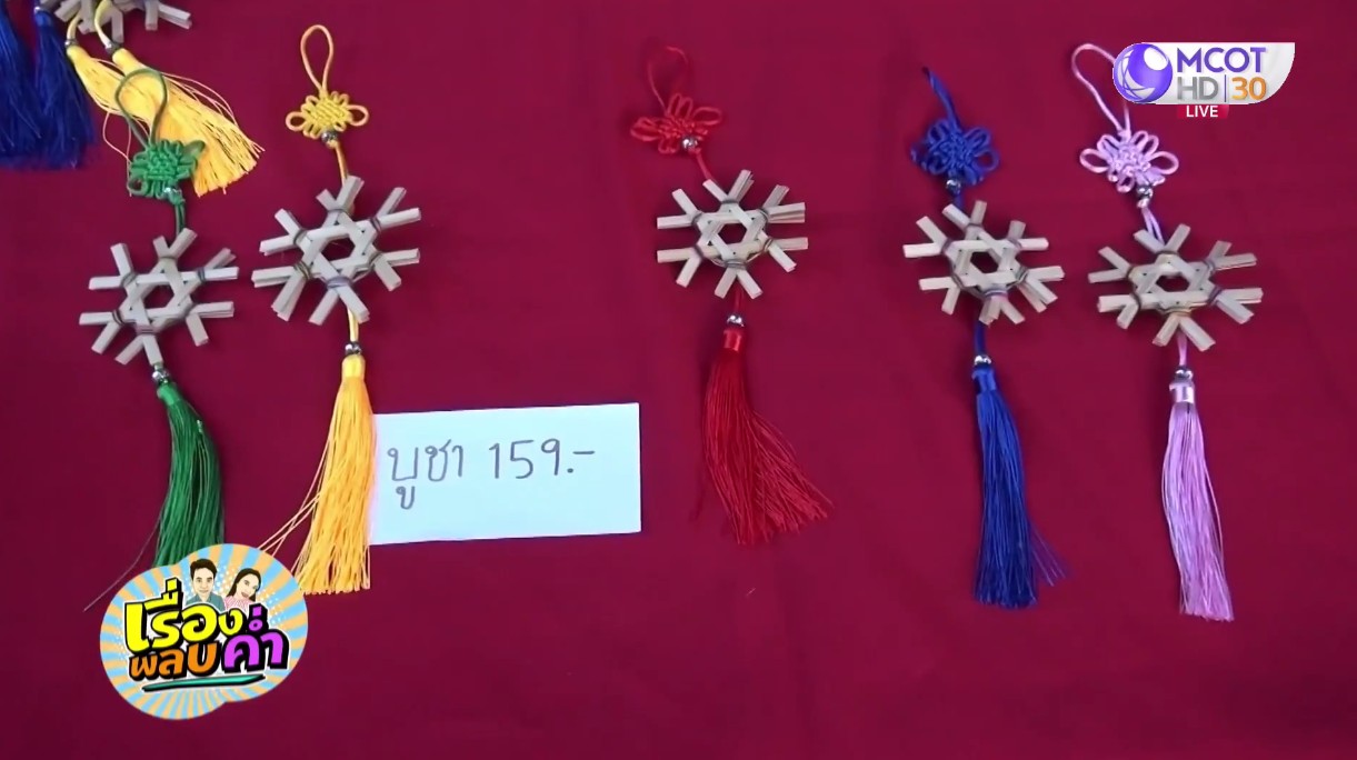 นอกจากนั้นยังมีพวงมาลัยทำจากไม้ไผ่ ราคาชิ้นละ 290 บาท ปิ่นปักผมจากไม้ไผ่ ชิ้นละ 160 บาท พานขันดอก ชิ้นละ 59 บาท และยังสามารถสานปลาตะเพียน นก กบ ม้า จากไม้ไผ่ ดอกพิกุล และดอกปีบ เป็นโมบายแขวนประดับได้ด้วย