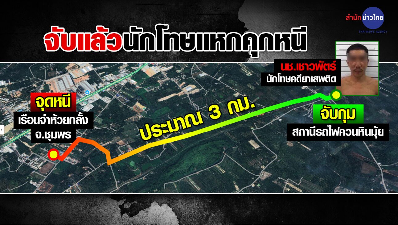 ชุมพร 21 ม.ค. –จับได้แล้ว นักโทษชายคดียาเสพติด แหกคุก เรือนจำชั่วคราวชุมพร พบมีอาการซึมเศร้า คิดถึงครอบครัว ทนไม่ไหวแอบหนี