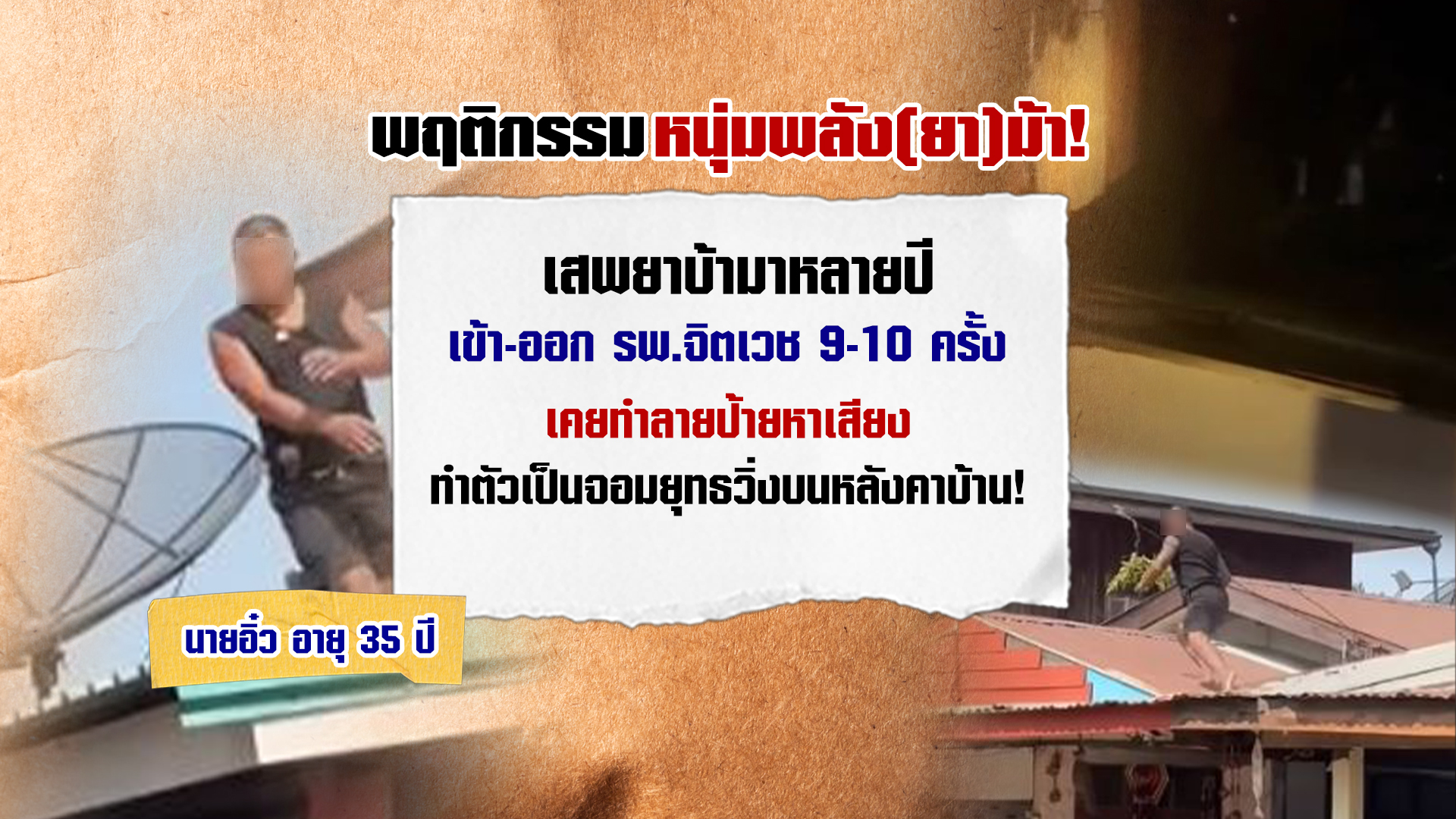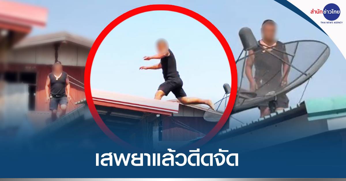 กาฬสินธุ์ 28 ม.ค. – นึกว่าถ่ายหนัง! หนุ่มทาสยาบ้า คงคิดว่าตัวเองเป็นจอมยุทธ วิ่งกระโดดไปมาบนหลังคาบ้านของชาวบ้าน ไม่หวั่นอันตรายใดๆ หลังมีอาการดีดจัด จากการเสพยา
