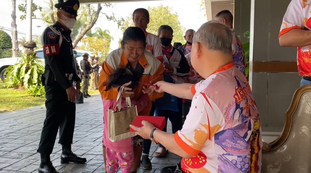 วานนี้ (28 ม.ค.) บรรยากาศหน้าบ้านสำลีเงิน ถ.นิตโย เขตเทศบาลนครอุดรธานี ของนายปรีชา ชัยรัตน์ และนางสรรค์นรา ชัยรัตน์ คหบดีเมืองอุดรธานี ซึ่งเป็นเจ้าของกิจการโรงน้ำตาลเริ่มอุดม โรงแรมบ้านเชียง ตลาดปรีชา และอสังหาริมทรัพย์ ที่มีการแจกอั่งเปาให้กับคนยากไร้ โดยหน้าบ้านได้มีการตั้งเต็นท์ให้ประชาชนที่มารอรับอั่งเปาได้นั่งพักคอย มีตำรวจ ทหาร อาสากู้ภัย คอยอำนวยความสะดวกการจราจรและปฐมพยาบาลให้ผู้ป่วย