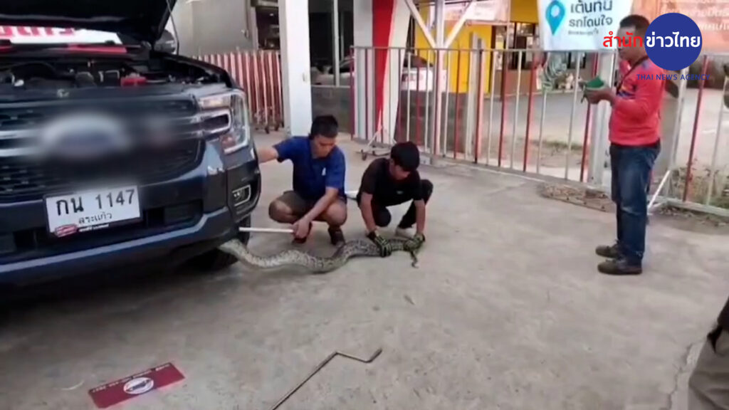 ปราจีนบุรี 1 ก.พ.- เซลส์สาวไลฟ์สดขายรถยนต์มือสอง ถึงกับผงะขณะเปิดฝากระโปรงรถ เจองูเหลือมโผล่ โทรเรียกกู้ภัยทันที