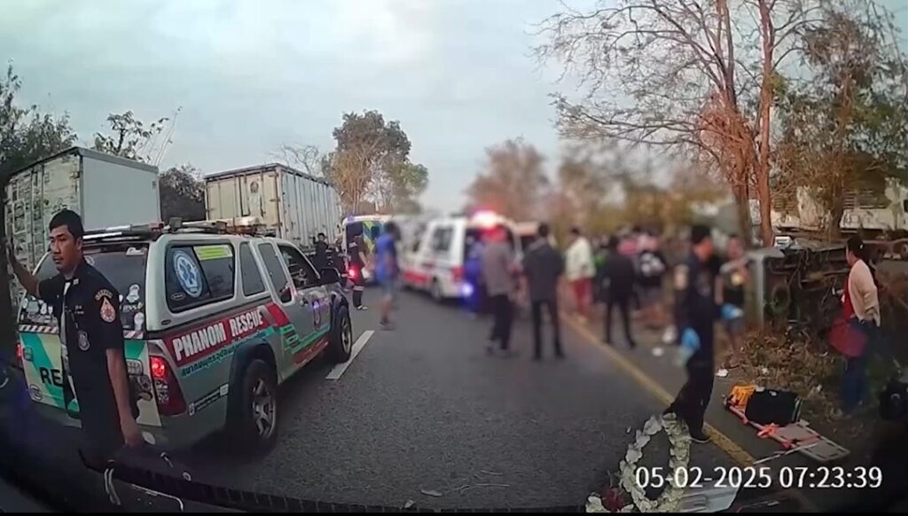 ฉะเชิงเทรา 5 ก.พ.- รถตู้รับส่งนักเรียนพุ่งไถลตกลงเกาะกลางพลิกคว่ำบนถนน 304 พนมสารคาม มุ่งหน้าเมืองแปดริ้ว บาดเจ็บ 13 คน คาดคนขับวูบหลับใน