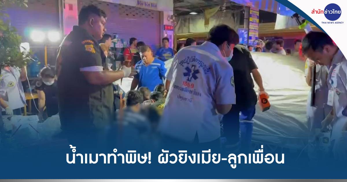 ปทุมธานี 9 ก.พ.-สามี-ภรรยา นั่งดื่มเหล้าด้วยกัน ก่อนมีปากเสียง สามีคว้าปืนยิงภรรยาสาหัส ก่อนยิงตัวเองหวังหนีผิด และกระสุนยังพลาดไปถูกลูกเพื่อนได้รับบาดเจ็บ