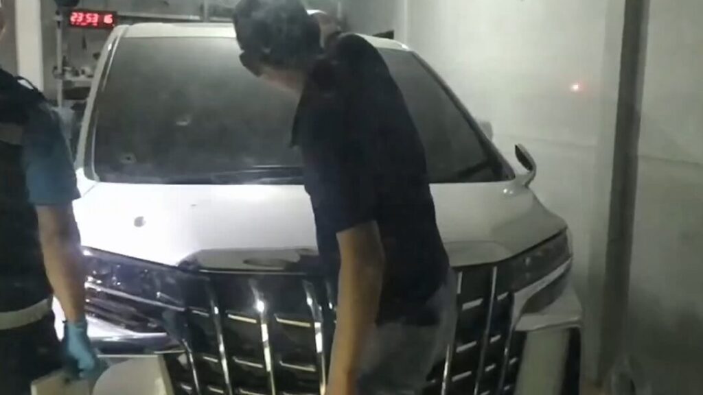 กล้องวงจรปิดภายในบ้านพักของผู้เสียหายซึ่งเป็นหัวหน้าพนักงานโรงงานอุตสาหกรรมแห่งหนึ่งในตำบลมาบตาพุด เผยให้เห็นนาทีที่คนร้าย ใช้อาวุธปืน กราดยิงเข้ามาในบ้านพัก กระสุนทะลุประตูบ้าน เข้าไปถูกรถยนต์โตโยต้า อัลพาร์ดที่จอดอยู่ในโรงรถ ได้รับความเสียหาย เคราะห์ดีคนในบ้านไม่มีใครได้รับบาดเจ็บหรือเสียชีวิต