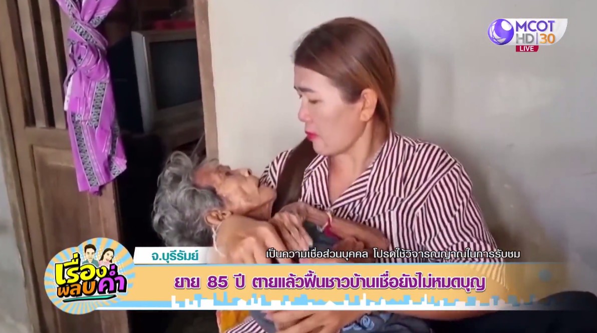 ที่บ้านของคุณยายพัว หรือ ยายแต๋ว อายุ 85 ปี ชาว อ.นางรอง จ.บุรีรัมย์ ซึ่งตายแล้วฟื้นขึ้นมาอีกครั้ง ลูกหลานเล่าว่า วันที่ 5 ก.พ.ที่ผ่านมา ช่วงเวลาประมาณ 21.00 น. คุณยายนอนแน่นิ่ง ไม่หายใจ ปลุกอย่างไรก็ไม่ตื่น ลูกหลานและคนใกล้ชิดจึงมารวมตัวกันไหว้ขอขมา และแจ้งกู้ภัยให้มารับร่าง เพื่อเตรียมเคลื่อนไปบำเพ็ญกุศลที่วัด แต่ผ่านไปประมาณ 40 นาที คุณยายกลับฟื้นลุกขึ้นมานั่ง สร้างความประหลาดใจให้กับลูกหลานและชาวบ้านที่อยู่ในเหตุการณ์อย่างมาก