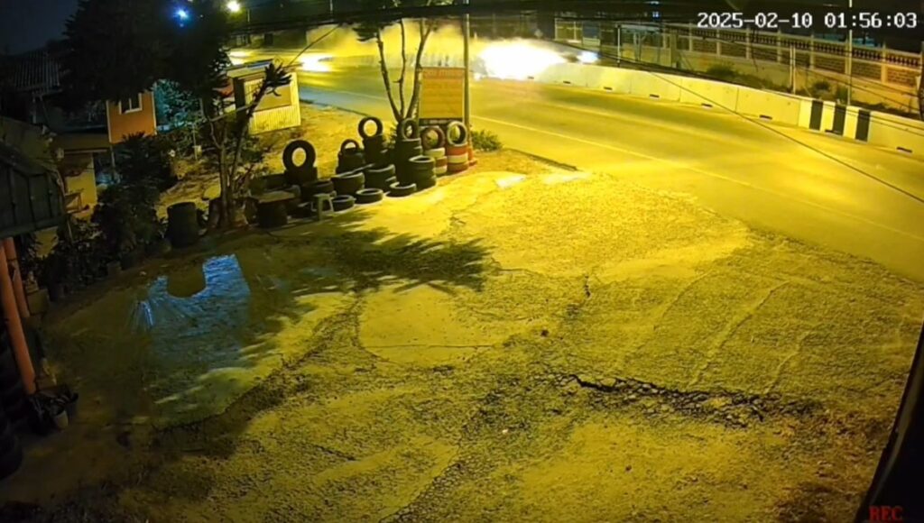 ช่วงเวลา 01.56 น. รถกระบะขับซิ่งเหินปีนแบริเออร์ปูนกั้นอยู่กลางถนน จนเกิดฝุ่นตลบและเสียงรถกระแทกดังสนั่น บริเวณหน้าวัดเขาโพธิ์ อ.บ้านค่าย จ.ระยอง หลังเกิดเหตุขับชน รถกระบะไปจอดนิ่งอยู่หน้ามหาวิทยาลัยพระจอมเกล้าพระนครเหนือ