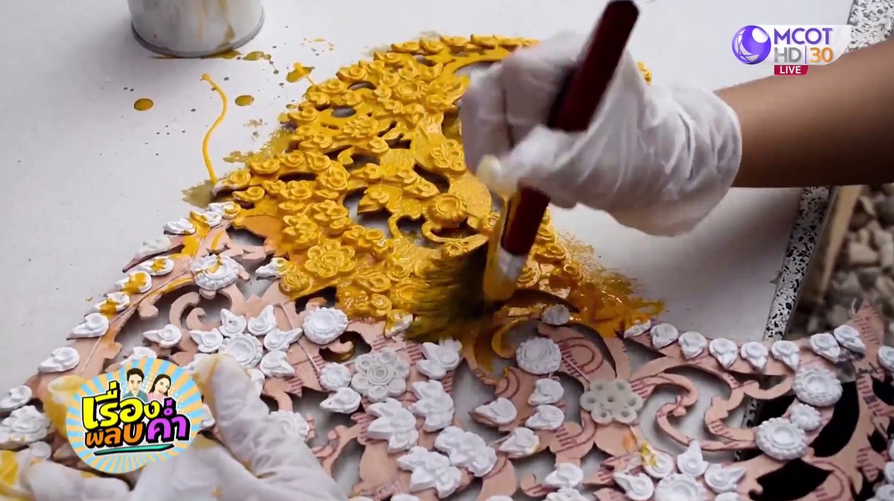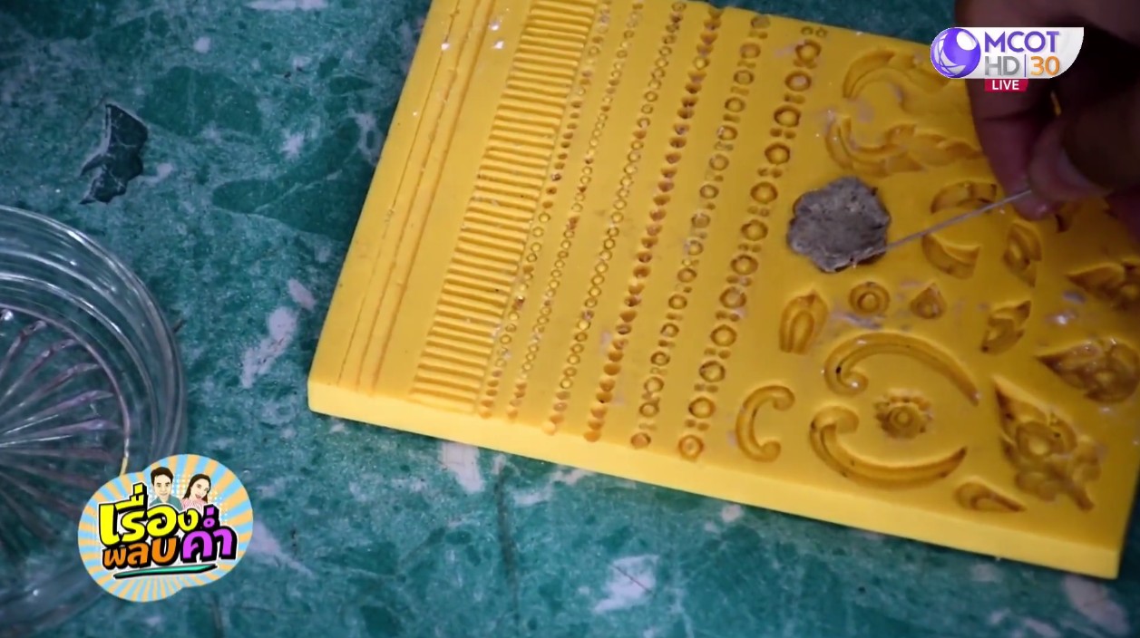วิธีการทำ คือ นำใบอ้อยมาหั่น ตำให้ละเอียด นำไปผสมกับแป้งข้าวเจ้าที่ต้มกับน้ำให้จับตัวเป็นก้อน นวดผสมกับผงแคลเซียม ปูนยาแนว ทิชชู และใบอ้อย นวดให้เข้ากัน เท่านี้ก็จะได้ดินไว้สำหรับกดลาย เวลาจะใช้ก็นำดินที่ผสมแล้วกดลงในแม่พิมพ์ตามลวดลายที่ต้องการ แล้วนำไปติดบนโครง หรือตัวเรือนเครื่องประดับ นำไปตากแดดให้แห้ง แล้วลงสีน้ำมัน (สีทอง) ปิดทองคำเปลว และประดับตกแต่งเพชรพลอย เท่านี้เป็นอันเสร็จ ออกมาเป็นชิ้นงานวิจิตรสวยงาม