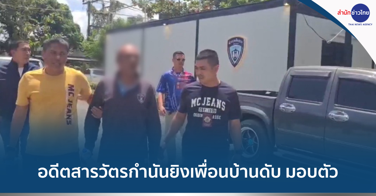 สงขลา 19 ก.พ. – อดีตสารวัตรกำนันปืนดุมอบตัวแล้ว หลังก่อเหตุยิงเพื่อนบ้านเสียชีวิต 1 คน และบาดเจ็บ 2 คน สาเหตุมาจากสุนัขของผู้ตายกัดสุนัขของผู้ต้องหา