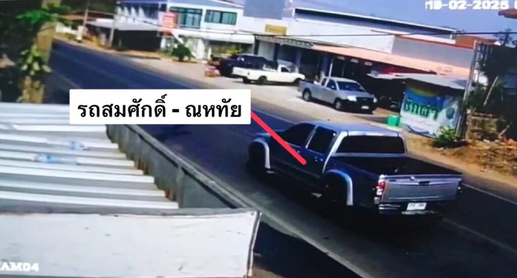 กล้องวงจรปิดบันทึกภาพขณะรถกระบะคันหนึ่งวิ่งอยู่ในหมู่บ้าน ต.คูเมือง อ.คูเมือง จ.บุรีรัมย์ แต่ที่น่าแปลกใจคือ เสียงแตรดังยาว จนภาพรถคันดังกล่าวพ้นกล้องวงจรปิดไป จากนั้น ตำรวจ สภ.คูเมือง ได้รับแจ้งเหตุยิงกันเสียชีวิตและบาดเจ็บ พบรถกระบะที่อยู่ในภาพวงจรปิดจอดอยู่ ภายในพบศพ นายสมศักดิ์ อายุ 46 ปี เป็นพ่อค้าขายหมูปิ้ง กระสุนเจาะเข้าขมับขวาทะลุซ้าย นั่งอยู่เบาะผู้โดยสารข้างคนขับ และนางณหทัย อายุ 52 ปี ผู้อำนวยการโรงเรียนแห่งหนึ่ง อ.ลำทะเมนชัย จ.นครราชสีมา ซึ่งเป็นภรรยาของผู้ก่อเหตุ สภาพฟุบหน้าคาพวงมาลัย มีบาดแผลถูกยิงที่ท้ายทอย กระสุนทะลุปาก หายใจรวยริน เจ้าหน้าที่กู้ภัยจึงรีบช่วยเหลือนำตัวส่งโรงพยาบาล