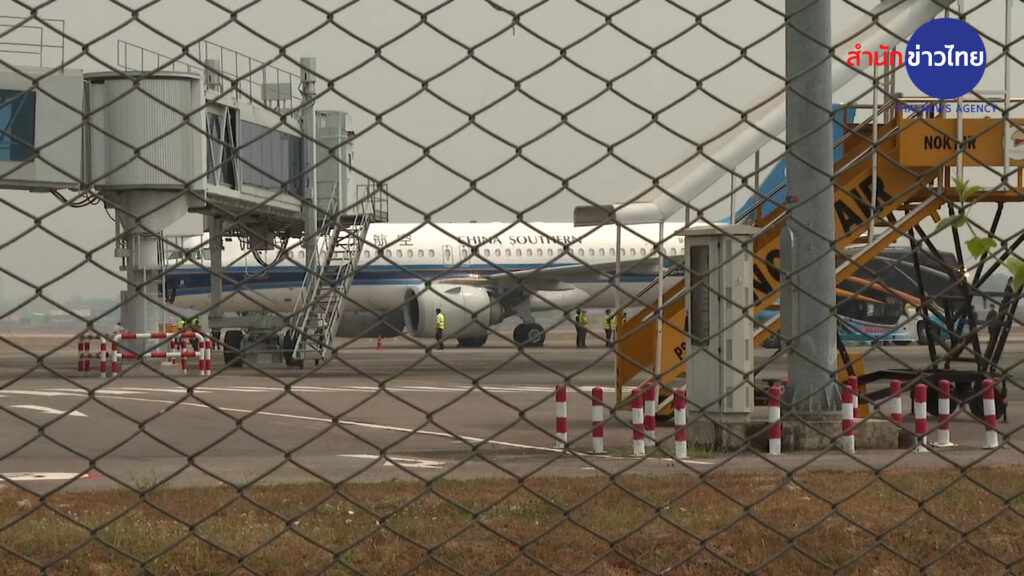 เครื่องบินเช่าเหมาลำของสายการบินเซาท์เทิร์นไชน่าแอร์ ที่บินมาจากหนานจิง ของจีน มารับเหยื่อแก๊งคอลเซ็นเตอร์ชาวจีน ที่ทำงานในเมืองเมียวดีฝั่งเมียนมา ข้ามมายังชายแดนแม่สอดของไทย เพื่อส่งกลับจีนเป็นชุดแรกในวันนี้ 4 เที่ยวบิน รวม 2 ร้อยคน ซึ่งจะเห็นปฏิบัติการส่งชาวจีนจากเมืองเมียวดีกลับบ้าน ซึ่งเที่ยวบินนี้เป็นเที่ยวบินที่ 3 แล้ว แต่ละเที่ยวบินจะใช้เวลาไม่ถึงครึ่งชั่วโมง โดยมีเจ้าหน้าที่ฝ่ายไทยและจีนคอยควบคุมอย่างใกล้ชิด
