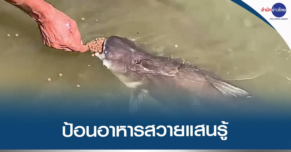 ตรัง 21 ก.พ. – สุดเชื่อง! เจ้าสำนักสงฆ์เขาหลักจันทร์ จ.ตรัง ใช้ช้อนป้อนอาหารเม็ดให้ปลาสวายแสนรู้ 3 ตัว ที่เลี้ยงมาตั้งแต่เล็ก จนคุ้นเคยกัน ว่ายมากินอาหารจากมือ แถมลูบหัวได้